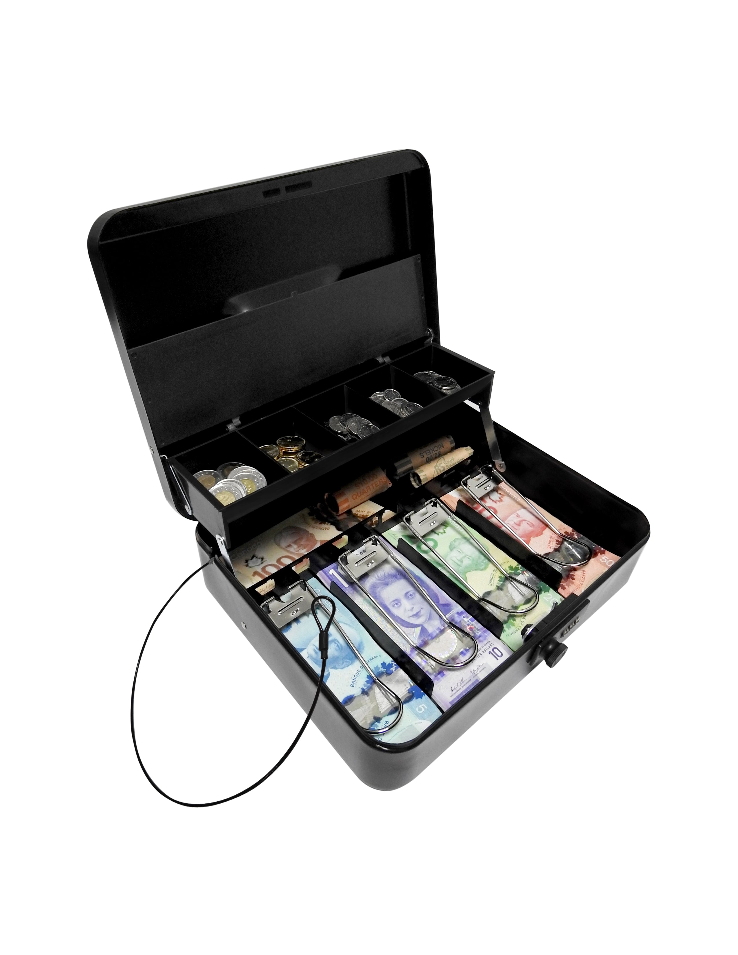 MANHATTANMCBC-2200/ TIERED TRAY DELUXE COMBINATION CASH BOX (Refurbished)Secure your valuables such as currency and coin, receipts, cheques, jewelry and other valuables with this tired tray security key... $22.99$22.99$22.99