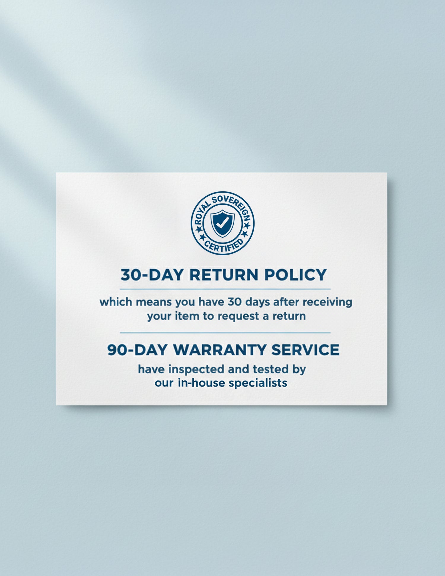 Your satisfaction is our top priority at Royal Sovereign. If you're not completely happy with your purchase, you can return it within 30 days of the purchase date for a full refund.