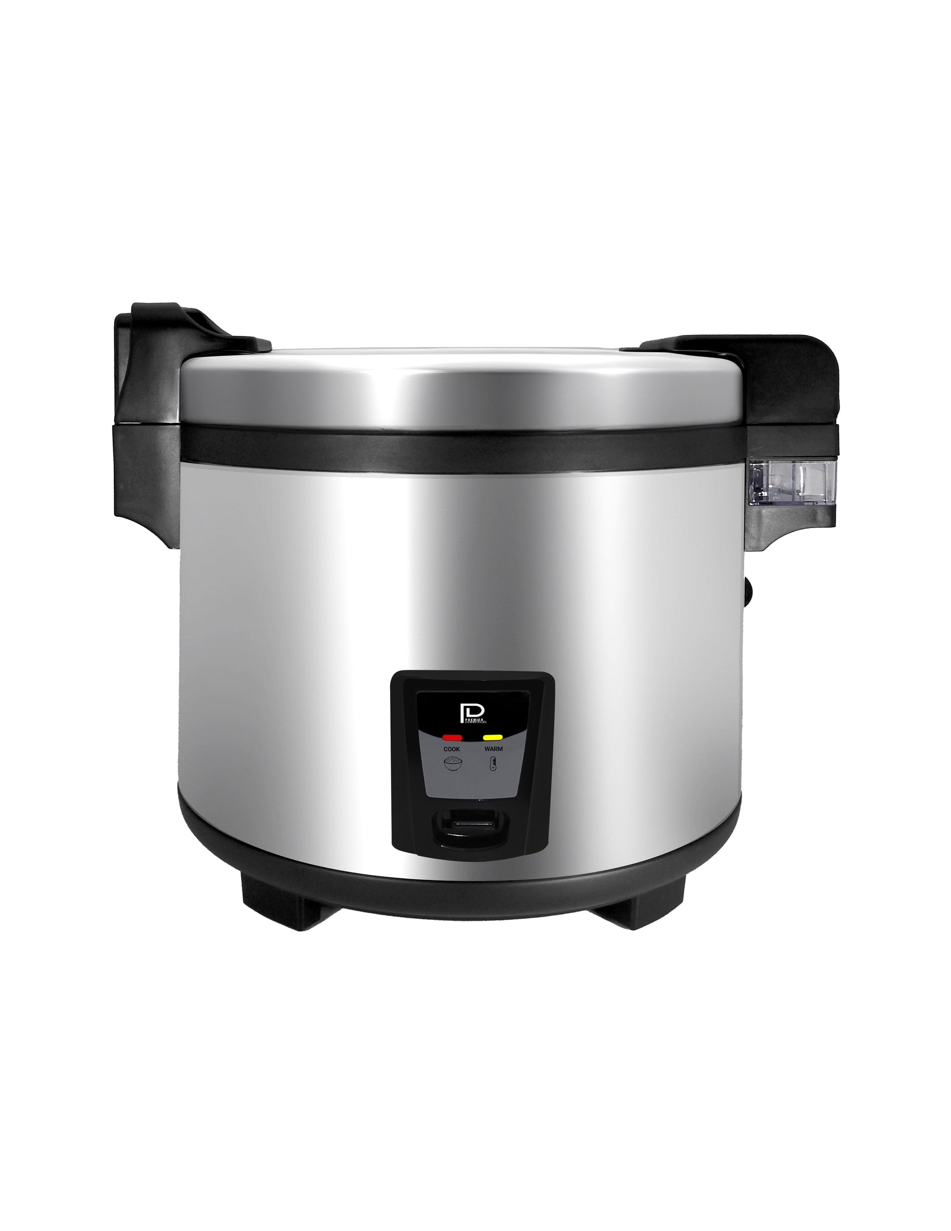 - Heavy-duty heated stainless-steel hinged lid ideal for commercial use. Heated lid helps ensure even cooking and no crust on cooked rice.